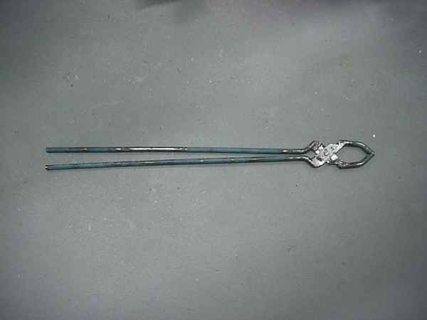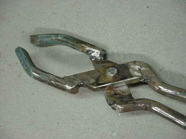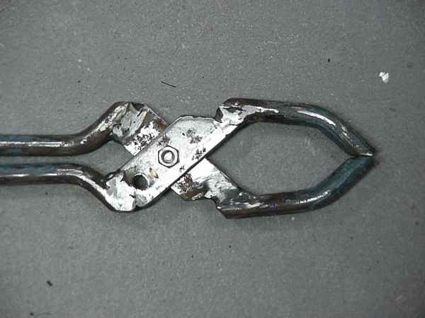 | For moving the preheated pieces of metal from the preheater in the hot crucible is its very convienient to have some pliers of sufficient size. Although if the pliers are too big they decrease handlingcomfort and it becomes clumsy to pick up small pieces from the corners of the basket. Here the big pliers are described. I'm going to make a smaller version also. Click the images to enlarge. | ||||