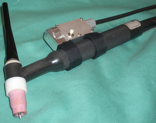 Here are the pix of my finger-tip tig controller. Nothing fancy – just started with a couple chunks of aluminum, and whittled until I liked the size and feel.